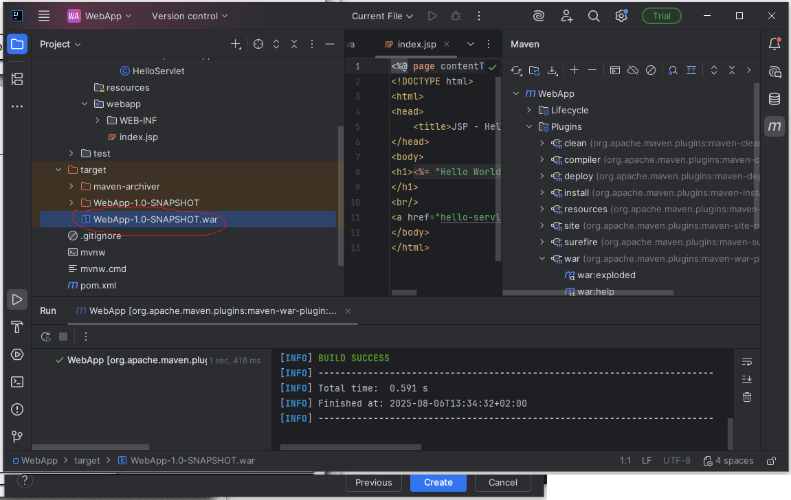 .war-Datei erstellen.war-Archiv erscheint imtarget/-Verzeichnis des Projekts- ggf. auch explizit einen Rebuild des Projekts auslösen